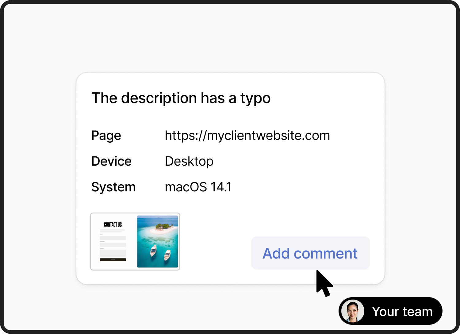 There is nothing for your clients to install. When you add Feedbucket to your website the client gets everything they need right in their browser.
